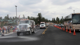 Mais que se passe-t-il ? La Main Street de Tusayan est séparée en deux.