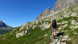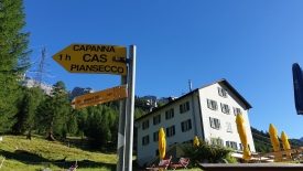 Il est environ 8h30 lorsque nous arrivons en vue du refuge de Piansecco. Nous échangeons quelques mots avec deux alpinistes qui vont visiblement monter aussi en direction du Gerenpass.