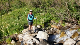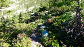 Étant donné qu’il est encore tôt, nous nous posons un moment et nous offrons un jus de pomme et après avoir étanché notre soif (bon, il reste tout de même de l’eau dans les Camelbak), nous partons explorer les alentours du refuge, sur un chemin didactique.