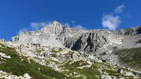 Vue sur le Chüebodenhorn, une montagne de 3070 m d’altitude située à la frontière entre les cantons du Valais et du Tessin. Ce n’est pas l’objectif de la journée mais – d’après mes lectures – c’est un 3000 assez facile.