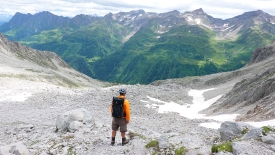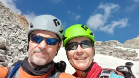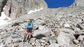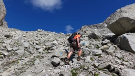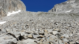 Avant d’entamer la montée par le pierrier, nous inaugurons nos casques d’alpinisme, achetés l’année passée. J’avais en effet lu sur un blog qu’il y avait risque de chutes de pierres notamment lorsque d’autres randonneurs étaient présents plus en amont sur le chemin. Et comme on dit chez nous, better safe than sorry.