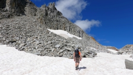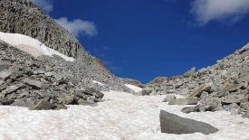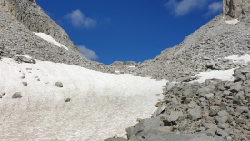 Ouf, le plus dur est fait ! Nous voici sur une sorte de replat où persiste un peu de neige.