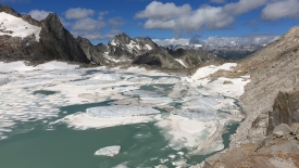 Des icebergs en Suisse ? Le phénomène est décrit par Giovanni Kappenberger, un célèbre glaciologue tessinois (traduit de l’italien) : « En raison du réchauffement climatique, un petit lac s’est formé au pied du glacier du Chüeboden, où des blocs de glace ressemblant à des icebergs ont émergé pendant quelques mois, à partir de novembre 2020. L’eau pénètre sous la langue glaciaire et sa pression en détache des morceaux qui ressurgissent ensuite, flottant dans le lac. Ils ressemblent à des icebergs : un phénomène qui s’est rarement vu ces dernières années, généralement d’un seul bloc et non de morceaux en plusieurs événements comme cela s’est produit au col de Geren« .