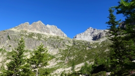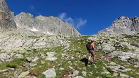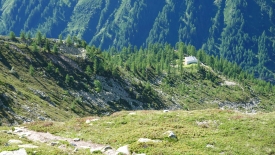 Nous commençons à prendre de la hauteur. Au loin, le refuge de Piansecco.