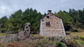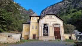 Arrivés au-dessus de Goglio, nous prenons une variante qui nous dirige vers l’ancien départ du téléphérique, reconverti en musée.