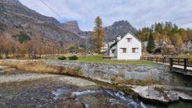 Nous pénétrons dans le village de Devero et, parvenus au pont, nous ne franchissons pas le Rio Buscagna, contrairement aux autres fois. Car aujourd’hui, nous allons découvrir la partie ouest du village.