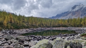 Peut-être les rochers qui l’entourent sont-ils plus noirs que de coutume ? Pas sûr. Néanmoins, nous pouvons vivre sans une explication. Plus jolie que le lac, peut-être, est la forêt qui l’entoure. Des mélèzes, aux troncs toujours un peu difformes, et un sous-bois envahi de myrtilliers et de rhododendrons.