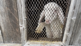 Dans l’étable, sont enfermés onze petits agneaux. Ils ont dû nous entendre et ont tenu à se manifester, cherchant vraisemblablement une main charitable pour déverrouiller la porte.