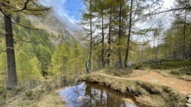 Partis de Goglio, nous suivons la Via d’Arbola qui fut durant des siècles une des routes principales pour le transport des marchandises entre la Suisse et l’Italie. Arrivés à Devero, nous montons à l’Alpe Buscagna pour aller découvrir un autre Lago Nero. Le retour à Devero se fait en longeant le Rio Misanco.