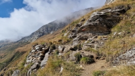 La bochetta di Scarpia est maintenant loin, bien loin. Et là encore, le sentier a été construit, comme en témoigne ce mur de soutènement.