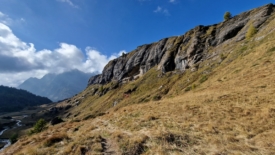 Le chemin se rapproche petit à petit du torrent. Nous supposons que le lac se trouve derrière ce petit col. Qui n’est pas le Passo Pojala.