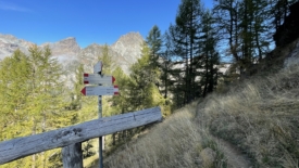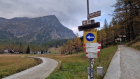 Lorsque nous atteignons Corte d’Ardui, nous ne pouvons résister à l’appel de ce panneau et quittons le sentier pour suivre la direction de l’Alpe Sangiatto.