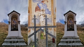 Le plan B est accepté par toutes les parties. Mais avant de l’entamer, nous nous étions promis d’aller voir le petit oratoire tout proche qui borde le sentier allant en direction d’Agaro. La statue de la Vierge et l’Enfant est une réplique d’une statue de bois d’origine bavaroise sculptée à Goms, dans la vallée éponyme, juste de l’autre côté du Simplon. La sculpture originale (qui date, si mes souvenirs sont bons du XII ou XIIème siècle) est conservée au musée de Croveo, un des villages le long de la route qui monte à l’Alpe Devero.