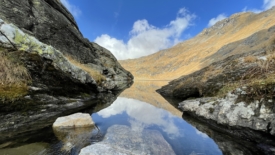 La sortie du lac, là où l’eau, quelques mètres plus loin, se jette en cascade dans la gorge.