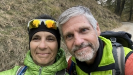 Le ciel affiche un bleu immaculé et nos gambettes frétillent d’impatience. D’autant que, en ce qui me concerne, je teste aujourd’hui mes bottes de sept lieues, mes nouvelles Salomon Element. Il paraît qu’elles sont magiques car chaque talon est équipé d’un ressort invisible. J’ai hâte de devancer – pour une fois – Stefano pour l’attendre plus loin, faisant mine de m’impatienter. On peut rêver, n’est-ce pas ?