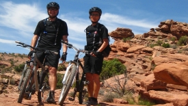 Arrivés à Moab, nous procédons à l’achat et au montage des pédales à Poison Spider Bicycles.
