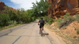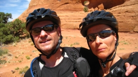 En rentrant à Moab, nous arrêterons au premier magasin de vélo acheter des clips et des pédales… Autant nous n’avions pas regretté lors de nos premières sorties (sans doute à cause du nombre de fois qu’il nous avait fallu descendre, descendre et pousser) de ne pas clipper, autant tant avant-hier qu’aujourd’hui, nous nous sommes sentis pénalisés sur certains passages.
