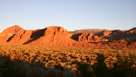Je tarde à descendre pour le petit déjeuner. Le soleil se lève sur Capitol Reef et la lumière est… magique.
