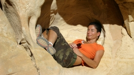 Pendant que les garçons partent au pas de course voir le Hickman Bridge, le Coniglio s’est trouvé un terrier.