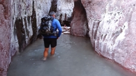 Nous nous changeons sous les derniers rayons du soleil. Arrivent alors un père et ses trois filles, que nous nous avions repérés aux sources en train de se préparer à remonter. Nous sommes épatés. La dernière a à peine deux ans. Les deux autres, entre 7 et 10. Ils ont tous l’air ravis de leur journée. Stefano lui lance : you’re a good dad, you know. Et lui de répondre, avec un grand sourire : I’m trying to… et de nous expliquer que la petite est très frustrée d’être portée et de ne pas pouvoir marcher.
