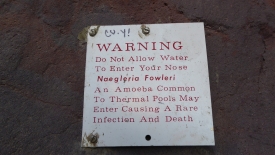 Ça y est ! Nous avons trouvé des Belges flamands (qui parlent mieux anglais que français) et nous sommes sur le bon chemin. Alors, si nous avons bien compris, le sentier passe par les sources chaudes et donc nous devrons, à un moment donné ou à un autre, enlever nos chaussures et remonter nos pantalons. Chic !