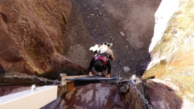 C’est au pied de cette échelle que nous enlevons nos chaussures et les accrochons au sac.