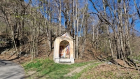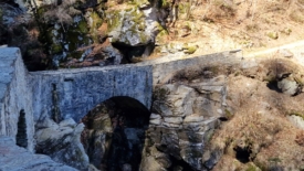 D’après le GPS, nous devrions être à proximité d’un sbarramento fortificato Eraccia. Deux dames rencontrées sur la route nous disent ignorer cette fortification mais nous indique un sentier qui permet de rejoindre un pont romanique. Effectivement, après une brève mais sèche descente nous rejoignons le ri del Cascinello qu’enjambe le pont al pónt da Rónch.
