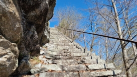 Les marches s’enchaînent, parfois régulières, parfois d’une distance et hauteur inégales. Les quadriceps sont fortement sollicités.