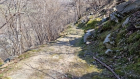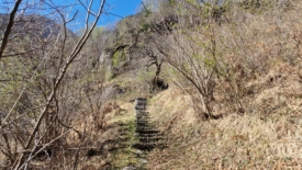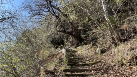 Le retour vers Giornico se fait par la sente qu’initialement nous devions suivre à l’aller. Le sentier est en relativement bon état mais les ronces commencent à l’envahir dangereusement. Si rien n’est fait avant l’été, il sera impraticable.