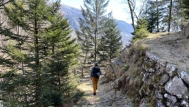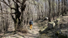 Nous avalons ainsi 500 mètres de dénivelé, levant parfois les yeux pour regarder le sous-bois ou encore le fond de la vallée d’où monte le bruit incessant des voitures et de camions roulant sur l’autoroute.