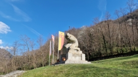 Nous partons de Giornico, sur la rive gauche du fleuve Tessin. La voiture est garée tout près du mémorial de la bataille des Sassi Grossi (grosses pierres). Cette bataille eut pour origine le non-respect de la promesse du duc de Milan de rendre le territoire de La Leventine aux Uranais. La bataille opposa 10’000 hommes du duc de l’époque – Jean Galéas Sforza – à un régiment de 600 confédérés. Long story short, des chutes de grosses pierres et de rondins, orchestrées par les confédérés, mirent en déroute l’armée ducale. La défaite fut totale et presque incroyable compte tenu de la disparité des forces sur le terrain. C’était le 28 décembre 1478.