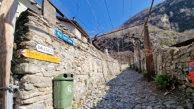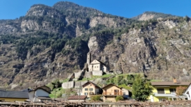 Nous voici de retour à Giornico, où nous garons la voiture au même endroit qu’hier. L’objectif du jour est également le même : arriver à Chironico, un petit village niché sur le premier balcon du flanc sud-est de la vallée. Ce village est accessible par une route et est habité à l’année.