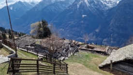 L’objectif du jour est de monter à Sobrio, le village qui possède l’alpe Manegorio, sur la route du col du Nufenen. Pas moins de 35 km à vol d’oiseau séparent le village de l’alpage. 50 km par la route d’aujourd’hui. Il fallait 12 heures de marche pour rejoindre l’alpage depuis Sobrio et 2 jours étaient nécessaires pour amener le bétail à la pâture.
