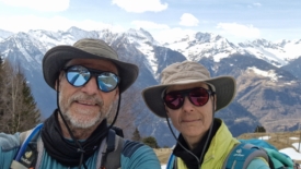 Nous décidons donc de passer à l’étage supérieur et de rejoindre Deiro à un peu plus de 1400 mètres. Nous espérons ne pas y trouver trop de neige. Stefano me montre le sentier sur le GPS. Là encore, les courbes de niveau sont très rapprochées. Même pas peur. Aujourd’hui, les jambes, poumons et cœur sont tous amis et collaborent efficacement. Profitons en !