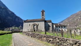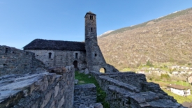 Nous arrivons à Giornico vers 15h, ce qui nous laisse le temps de nous approcher des églises. L’une d’elle nous intéresse particulièrement, la chiesa di San Nicola. Elle fut construite après 1100 et apparaît dans des documents dès 1202. C’est un parfait exemple de l’architecture romane de Lombardie.