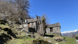 Nous arrivons à Orsino. Une fontaine nous invite à la pose. Nous nous délestons des sacs à dos quelques minutes, le temps de manger une barre, et faire sécher nos tee-shirts. Stefano propose de suivre la route à l’opposé de Chironico pour d’abord reposer les mollets et ensuite aller voir les quelques maisons qui composent le hameau de Sacco.