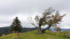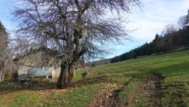 Nous rejoignons la crête, passons de l’autre côté pour arriver à L’Aurore, passons par l’arbre fourmi (encore plus beau que d’habitude mais toujours « inphotographiable ») et montons aux Monts de Bière devant. De là, nous prenons la route qui descend vers La Foirausaz avant de couper via un vieux chemin encombré de branches tombées au sol, chacune plus assassine que l’autre. Nous arrivons néanmoins sans encombre à l’entré du pré de la Foirausaz. Devant nous, le kilomètre et demi dont je parlais au début. Pas si interminable que ça, d’ailleurs.