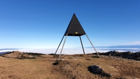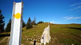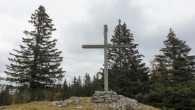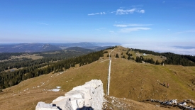 Au Mont Tendre, un randonneur, armé d’un appareil photo, attend que le point géodésique se libère. Je le vois s’impatienter lorsqu’une femme vient se planter dessous. Nous rigolons et lui souhaitons bonne chance.