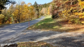 Nous passons sous les câbles des tire-fesses et arrivons à un couvert, tout proche de la route.