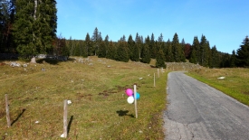 L’anniversaire a vraisemblablement lieu au chalet du Ski Club de Bière. Les volets sont ouverts et des voitures sont garées en contrebas. Nous en restons éloigné mais passons dire bonjour à La Correntine.
