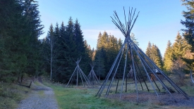 Nous passons devant le village de Tipis, désert, resté fermé cette année. Pas forcément à cause du Covid. La dernière fois que nous y sommes passés, une affichette annonçait : fermé jusqu’en 2021. Nous nous sommes toujours dit qu’il fallait qu’on vienne passer une nuit ici. Un, pour soutenir l’économie locale et parce que le projet est sympa, deux, car ça doit être une chouette expérience. Nous constatons avec soulagement que le bâtiment principal, celui qui abrite la cafétéria et la réception, est indemne de tout vandalisme.