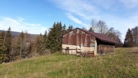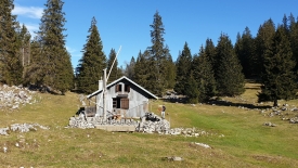 Nous sommes tout surpris d’y voir une voiture et un tracteur. Marco, le berger, serait-il encore là ? Non, le chalet est fermé. Dommage