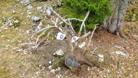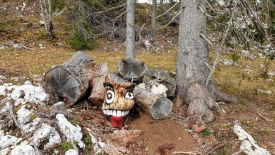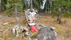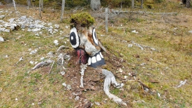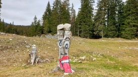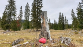 Nous partons vers le Noirmont des Français et comme la dernière fois, l’avant dernière fois et encore les fois précédentes, nous enlevons un petit sapin que des randonneurs, se croyant sans doute malins, enfilent dans le poteau creux.