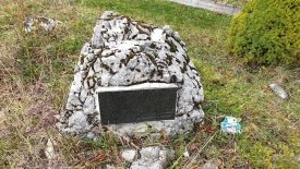 Nous constatons que l’enclos de la pierre commémorative n’a toujours pas été réparée. La grenouille est toujours là.