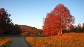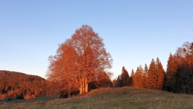 Dernière photo de la journée. Un joli arbre éclairée par la lumière rouge du soleil couchant.