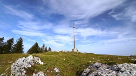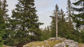 Quelques silhouettes se détachent déjà, là-haut, au sommet du Mont Sâla, tout près de la croix.