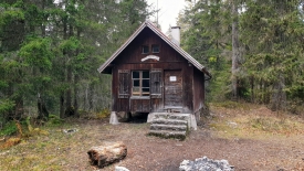 puis partons en quête de la pierre celtique. Les indications données ne suffisent pas mais nous permettent de faire une longue échappée hors des sentiers battus. Nous arrivons à la cabane des Electriciens au moment où le premier rayon de soleil de la journée fait sont apparition.