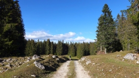 Au bout de la piste, nous retrouvons la route goudronnée qui descend vers la vallée de Joux.