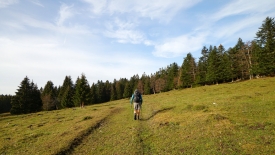 De là, nous suivons un sentier un peu vague qui traverse les pâturages.