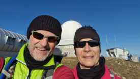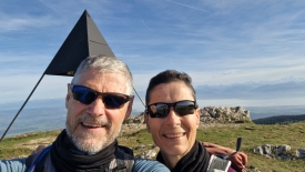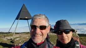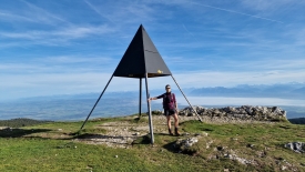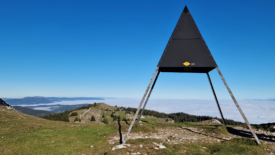 Le Mont Tendre. C’est toujours un plaisir de contempler d’un côté la chaîne des Alpes, et de l’autre la vallée de Joux. Je tiens fermement le point géodésique, il ne faudrait pas qu’il s’envole.